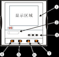 ①显示面板 ②USB、SD接口 ③确认键 显示通道切换键 时标切换、手/自动切换键 ④光标右移键 ⑤光标左移键 ⑥光标上移键 ⑦光标下移键