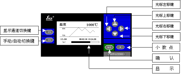 SWP-LCD仪表的外形尺寸为80×160×140 mm,配以40×70 mm带背光的液晶图型显示板,可集中显示中文提示,设置参数,补偿数值,测量数据,积算结果,工程单位,报警状况等。