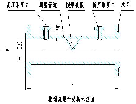 楔形流量计是八十年代开始开始逐步走向实用的一种新型流量计,其检测件是一个V字形楔块(又称楔形节流件),它的圆滑顶角朝下,这样有利于含悬浮颗粒的液体或粘稠液体顺利通过,不会在节流件上游侧产生滞流。因此特别适合在石油、化工等行业中用于体积流量和质量流量的测量。