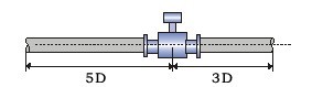 ·流量计前方最少要有5* D(D为流量计内径)长度的直管段,后方最少要有3* D(D为流量计内径)长度的直管段; · 流体的流动方向和 流量计的箭头方向一致; ·管道内要有真空会损坏流量计的内衬,需特别注意; ·在流量计附近应无强电磁场; ·在流量计附近应有充裕的空间,以便安装和维护; ·若测量管道有振动,在流量计的两边应有固定的支座测量不同介质的混合液体时混合点与流量计之间的距离最少要有30×D(D为流量计内径)长度为方便今后流量计的清洗和维护,应安装旁通管道;